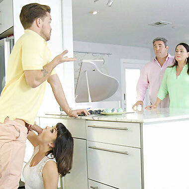 "Family Dick - Cute Teen Boy Takes His Step Daddys Cock in the Kitchen While Mommy Is Not Home"