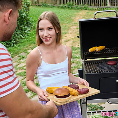 "Cute Maya takes two big cocks during hot summer BBQ"